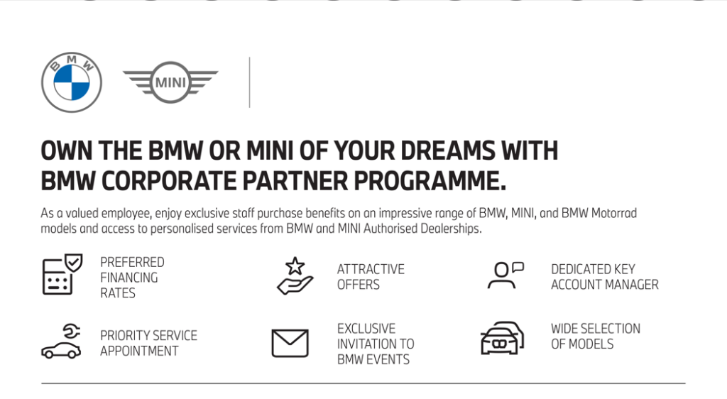 BMW is offering Hong Leong Group employees corporate benefits across BMW, MINI, and BMW Motorrad!