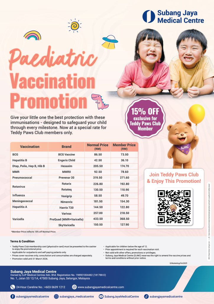 ๐ย Learn more:ย https://subangjayamedicalcentre.com/highlights/promotions/paediatric-vaccination-promotion